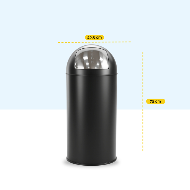 - De BRASQ Push Bin Prullenbak 30 Liter is dé perfecte combinatie van design, gemak en functionaliteit. Of je nu een moderne keuken, strak kantoor of gezellige bijkeuken hebt: deze touch bin voelt zich overal thuis. Dankzij het minimalistische design, de slimme bediening en de royale inhoud is dit dé afvaloplossing voor wie houdt van orde, stijl én eenvoud. Tijdloos design: Deze push bin prullenbak is ontworpen met oog voor detail én gevoel voor stijl. De minimalistische en tijdloze uitstraling zorgt ervoor dat hij moeiteloos opgaat in elk interieur – van landelijk tot industrieel, van modern tot klassiek. Het strakke silhouet en de subtiele afwerking maken deze prullenbak tot een echte eyecatcher, zónder te overheersen. Een slimme keuze voor wie functionaliteit én uitstraling belangrijk vindt. Materiaal: De BRASQ Push Bin is vervaardigd van stevig RVS poedergecoat zwart, wat niet alleen bijdraagt aan een luxe uitstraling, maar ook garant staat voor een lange levensduur. De robuuste constructie van de afvalemmer is bestand tegen dagelijks gebruik, terwijl de gladde afwerking zorgt voor een hygiënische én onderhoudsvriendelijke ervaring. Een investering voor een keuken of badkamer prullenbak waar je jarenlang plezier van hebt. Grote binnenemmer: Dankzij de ruime inhoud van 30 liter van deze zwarte prullenbak hoef je minder vaak te legen, ideaal voor drukke huishoudens of werkplekken. De stalen binnenemmer is perfect passend en voorzien van een handige hendel. Daardoor haal je hem eenvoudig uit de buitenbak om te legen of schoon te maken. Kortom: geen gedoe, wél gemak. De perfect sluitende deksel houdt bovendien nare geurtjes netjes binnenboord. Gebruiksgemak: De touch bin opent met een simpele duw tegen de voorzijde van de klep – geen voetsysteem of losliggende deksel dus. Dankzij het compacte ontwerp en de stabiele voet met antikrasrand past deze pedaalemmer zelfs in kleinere ruimtes, zonder in te leveren op gebruiksgemak of capaciteit. Functioneel én comfortabel in gebruik, iedere dag opnieuw. Afmeting product: Ø29,5 x 72 cm (h)