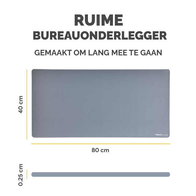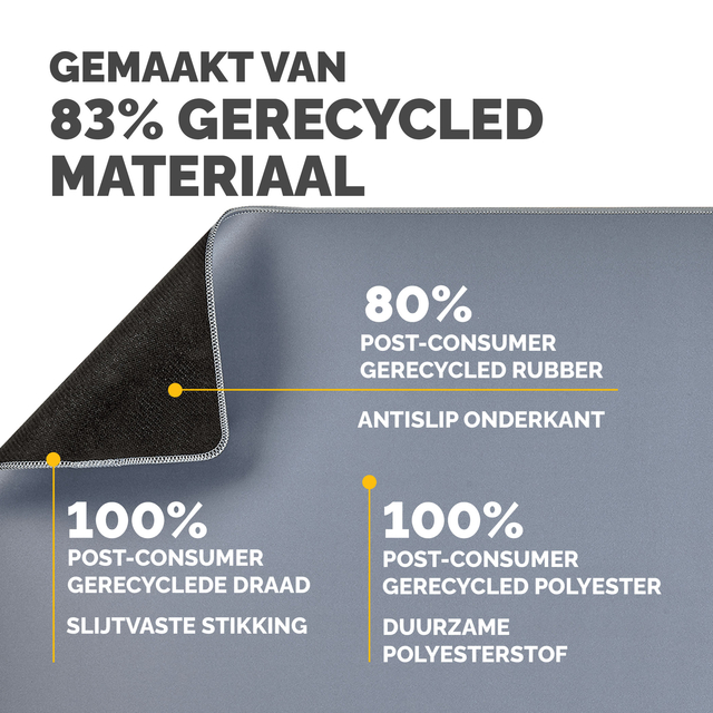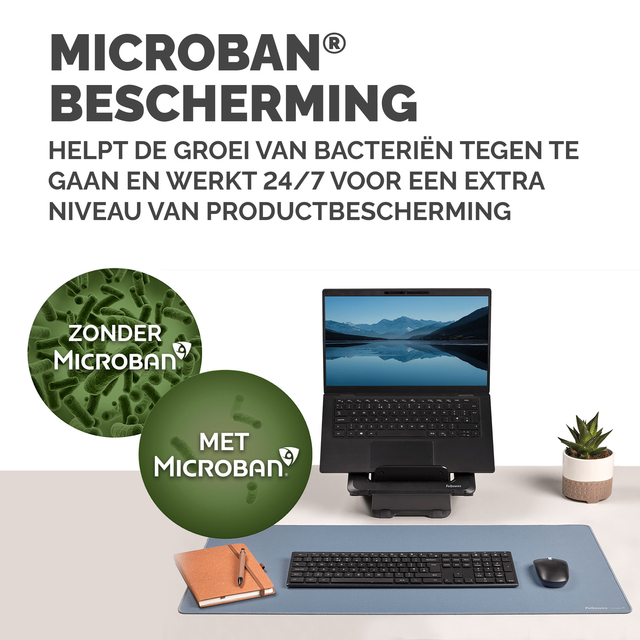 - Ruime bureaumat beschermt tegen vuil en krassen en zorgt voor een niet-reflecterend werkoppervlak. Biedt een comfortabel oppervlak om te schrijven en te typen en verbetert de prestaties van de muis. Ingebouwde Microban®-bescherming helpt de groei van bacteriën te voorkomen en werkt 24/7 voor een extra niveau van productbescherming. Gemaakt van 83% gerecycled materiaal. Antislip onderkant houdt de mat de hele dag op zijn plaats. Duurzame platte stiksels voorkomen rafelen. Gemaakt om lang mee te gaan, met 5 jaar garantie.