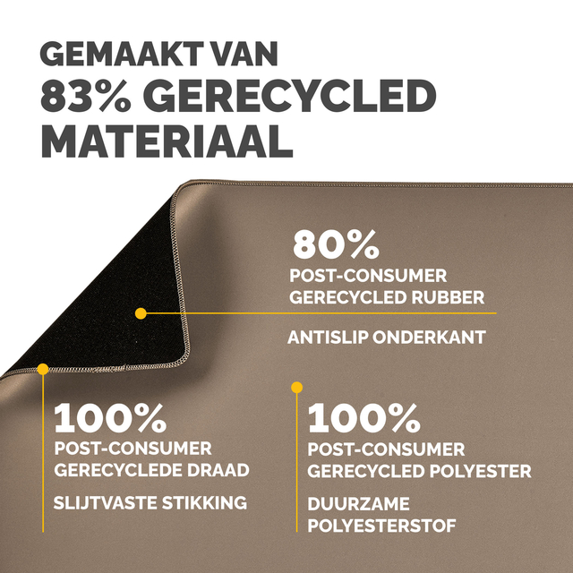 - Ruime bureaumat beschermt tegen vuil en krassen en zorgt voor een niet-reflecterend werkoppervlak. Biedt een comfortabel oppervlak om te schrijven en te typen en verbetert de prestaties van de muis. Ingebouwde Microban®-bescherming helpt de groei van bacteriën te voorkomen en werkt 24/7 voor een extra niveau van productbescherming. Gemaakt van 83% gerecycled materiaal. Antislip onderkant houdt de mat de hele dag op zijn plaats. Duurzame platte stiksels voorkomen rafelen. Gemaakt om lang mee te gaan, met 5 jaar garantie.