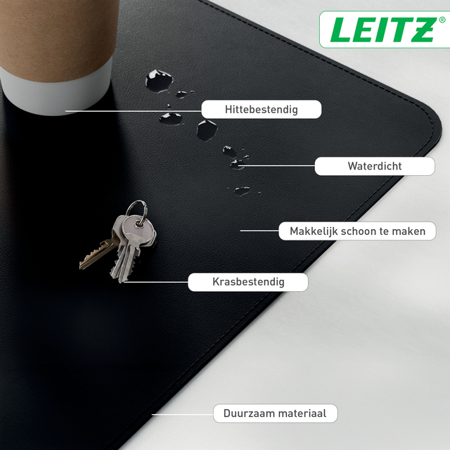 • De Leitz Grote Bureau-onderlegger is een gemakkelijk schoon te maken, waterdichte bureau-onderlegger om je bureau netjes te houden.