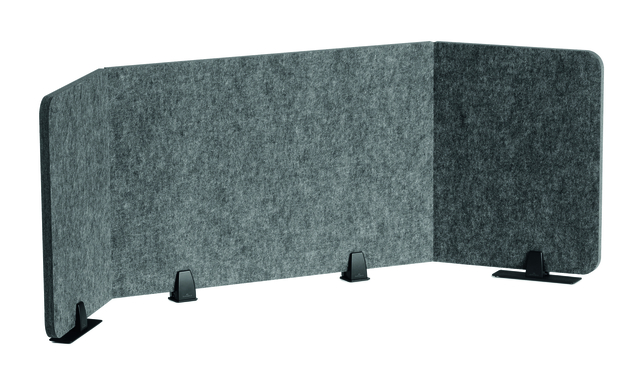 - Plooibaar bureauscherm voor effectieve privacy en akoestische bescherming op de werkplek, gemaakt van gerecycled PET-vilt.