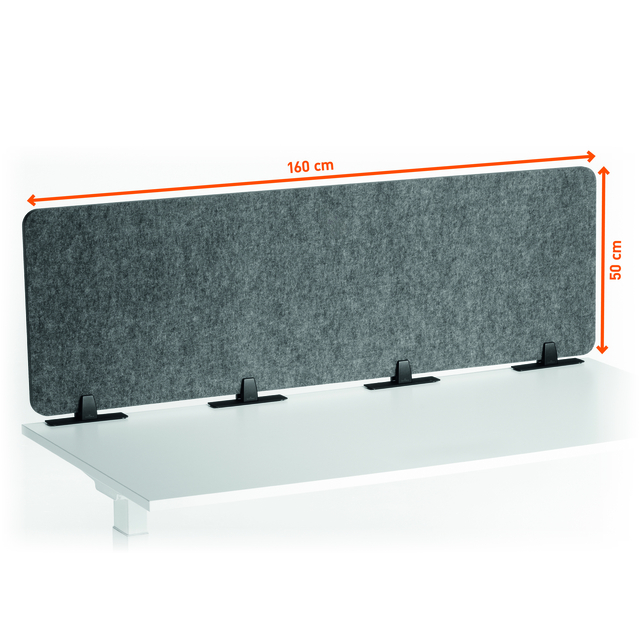 - Ideaal voor in hoogte verstelbare tafels: stabiele bevestiging bij het verstellen van de tafel en de privacy hoogte van 50cm blijft behouden.