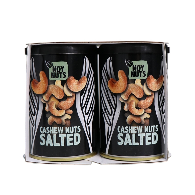 - NoyNuts Cashews Salted bestaat uit gezouten cashews. Een blikje bevat 150 gram. Een gezonder alternatief voor snacks. Lekker voor tussendoor. Hygiënisch per stuk verpakt. Probeer ook de andere producten uit het assortiment.