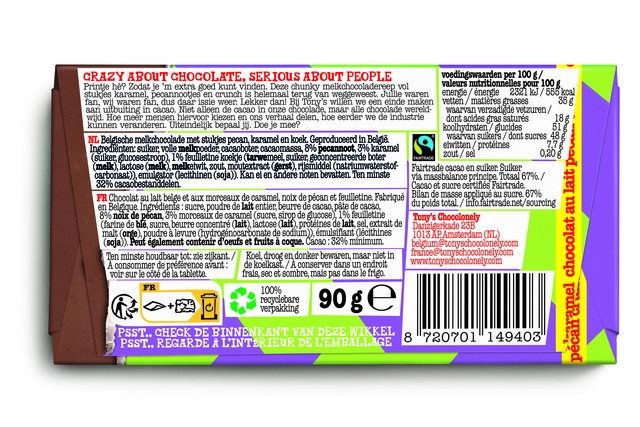 144 op voorraad € 3,21 Excl. BTW ntbArtikelnummer: 8720701149403 Meer dan 30.000 artikelen Gratis verzending vanaf € 50,- 144 op voorraad Chocolade Tony's Chocolonely melk karamel pecan crunch reep 90 gram aantal Toevoegen aan winkelwagen Toevoegen aan favorieten Toevoegen aan favorieten