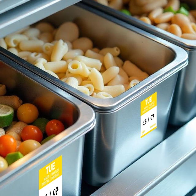 - Gekleurde voedsel-dagetiketten zijn essentieel voor efficiënt voorraadbeheer in de horeca. Ze maken het mogelijk om de bereidings- of openingsdatum van voedsel nauwkeurig te volgen. Dankzij een kleurcode per dag identificeert men in één oogopslag de producten die met voorrang gebruikt moeten worden. Dit helpt voedselverspilling te beperken en zorgt voor een optimaal voedselgebruik. Met deze labels voldoet men aan de HACCP-normen en vergemakkelijkt men de controle van de houdbaarheidsdatum. Dankzij de afneembare lijm zijn ze eenvoudig aan te brengen en te verwijderen. Ze kunnen worden gebruikt op alle soorten verpakkingen. In de keuken verbeteren ze de communicatie tussen teams door verwarring over de versheid van de producten te voorkomen. Het gebruik van daglabels betekent dagelijks tijd besparen en tegelijkertijd servicekwaliteit garanderen. Door te investeren in dit efficiënte etiketteringssysteem optimaliseren horeca-eigenaren zowel hun organisatie als hun winstgevendheid.