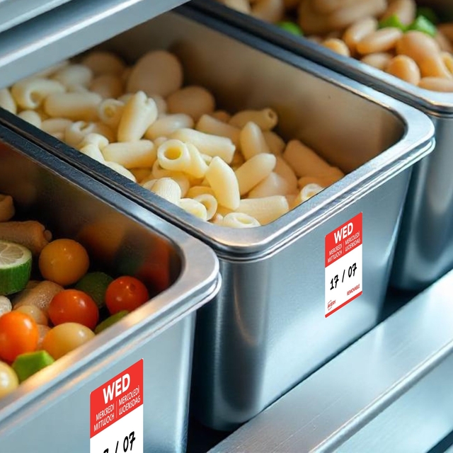 - Gekleurde voedsel-dagetiketten zijn essentieel voor efficiënt voorraadbeheer in de horeca. Ze maken het mogelijk om de bereidings- of openingsdatum van voedsel nauwkeurig te volgen. Dankzij een kleurcode per dag identificeert men in één oogopslag de producten die met voorrang gebruikt moeten worden. Dit helpt voedselverspilling te beperken en zorgt voor een optimaal voedselgebruik. Met deze labels voldoet men aan de HACCP-normen en vergemakkelijkt men de controle van de houdbaarheidsdatum. Dankzij de afneembare lijm zijn ze eenvoudig aan te brengen en te verwijderen. Ze kunnen worden gebruikt op alle soorten verpakkingen. In de keuken verbeteren ze de communicatie tussen teams door verwarring over de versheid van de producten te voorkomen. Het gebruik van daglabels betekent dagelijks tijd besparen en tegelijkertijd servicekwaliteit garanderen. Door te investeren in dit efficiënte etiketteringssysteem optimaliseren horeca-eigenaren zowel hun organisatie als hun winstgevendheid.