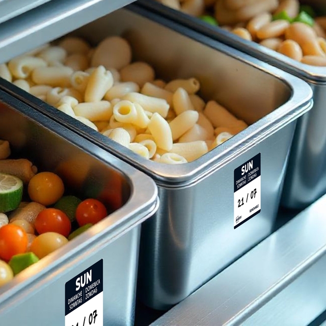 - Gekleurde voedsel-dagetiketten zijn essentieel voor efficiënt voorraadbeheer in de horeca. Ze maken het mogelijk om de bereidings- of openingsdatum van voedsel nauwkeurig te volgen. Dankzij een kleurcode per dag identificeert men in één oogopslag de producten die met voorrang gebruikt moeten worden. Dit helpt voedselverspilling te beperken en zorgt voor een optimaal voedselgebruik. Met deze labels voldoet men aan de HACCP-normen en vergemakkelijkt men de controle van de houdbaarheidsdatum. Dankzij de afneembare lijm zijn ze eenvoudig aan te brengen en te verwijderen. Ze kunnen worden gebruikt op alle soorten verpakkingen. In de keuken verbeteren ze de communicatie tussen teams door verwarring over de versheid van de producten te voorkomen. Het gebruik van daglabels betekent dagelijks tijd besparen en tegelijkertijd servicekwaliteit garanderen. Door te investeren in dit efficiënte etiketteringssysteem optimaliseren horeca-eigenaren zowel hun organisatie als hun winstgevendheid.