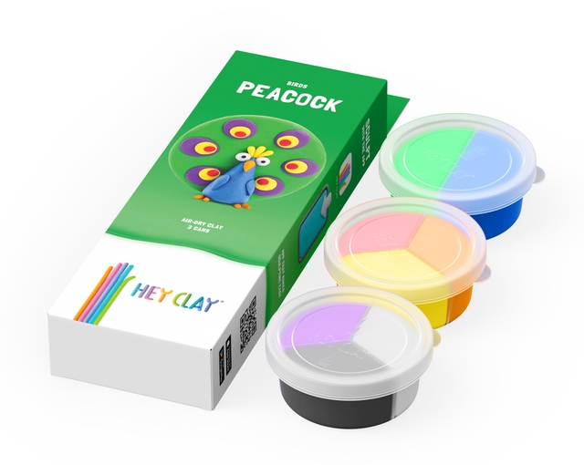 - Klei 3potjes Hey Clay Peacock Met HEY CLAY worden kinderen ondergedompeld in creativiteit in verschillende dimensies. De fysieke ervaring van het boetseren van een personage ontwikkelt hun verbeelding, fijne motoriek en creativiteit. De digitale ervaring van de app helpt bij het bouwen van een personage op een eenvoudige en leuke manier, waarbij ze leren over zijn persoonlijkheid, eigenschappen en grappen. Zelfs na het in elkaar zetten van het personage houdt het plezier van de creatieve ervaring niet op – de klei hardt binnen een paar uur uit en wordt speelgoed om voortdurend mee te spelen. Een kind kan het op een plank zetten, aan vrienden laten zien of mee naar school nemen – wat ze ook bedenken, het gegoten figuurtje zal niet smelten en behoudt de gegeven vorm. Veiligheid We hebben het ideale materiaal gemaakt om het meeste uit boetseren met klei te halen: licht, zacht, buigzaam en voelt prettig aan. Het heeft een speciale samenstelling, zodat het niet blijft plakken aan handen, kleding, meubels en in het algemeen aan alles behalve de kinderharten. Onze klei is niet giftig, heeft geen specifieke geur, vervuilt het milieu niet en is natuurlijk veilig voor kinderen. Het is gemaakt in strikte overeenstemming met de EAC, CE en ASTM kwaliteitsnormen. Let op! Hoe lekker en aantrekkelijk de figuurtjes ook zijn, eet ze alsjeblieft niet op, want ze zijn nog steeds van klei gemaakt