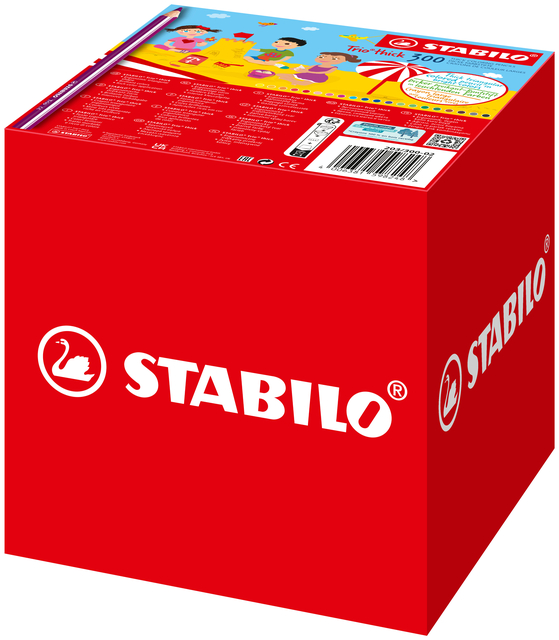 - Het STABILO Trio Thick kleurpotlood is ideaal voor kleine kinderen. De dikke driekantige vorm van het potlood biedt een ontspannen grip en moedigt kinderen aan de juiste schrijfhouding aan te nemen. De kleuren zijn zeer intens en de potloden geven zeer gemakkelijk veel kleur af. Driehoekig kleurpotlood STABILO Trio thick Classpack met 300 potloden.