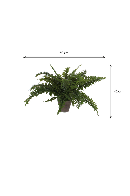 - Klaar om zorgeloos te genieten? De kunstplanten van Mica Decorations zijn niet van echt te onderscheiden, maar hebben geen enkel onderhoud nodig. Deze Boston varen valt op door de groene, diep ingesneden, krullende bladeren. Levensecht, maar met alle voordelen van een kunstplant. De plant is al gemodelleerd en stevig verankerd in een terracotta pot met basalt grijze pigmenten waardoor elke pot uniek is. Na aankoop kan de plant dus direct worden neergezet. Naar wens kan de bijgeleverde pot natuurlijk ook als stevige basis dienen voor een sierlijke overpot. Combineer de varen met andere kunstplanten en -bloemen uit de collectie en breng meer groen in huis. De plant heeft een hoogte van 42 cm en een diameter van 50 cm.