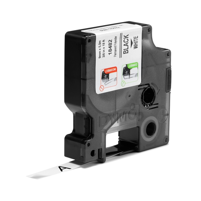 Labeltape Dymo Rhino industrieel polyester 9mm zwart op wit