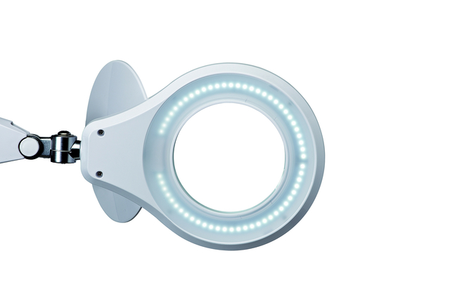 - Traploos dimbaar. Grote lens van 126 cm². Zuinig door de moderne led-techniek. Gelijkmatige lichtverdeling zonder schaduw door ringvormig aangebrachte LED’s. Metalen parallelogram arm, elegant omhuld. Technisch veiligheidsconcept Made by MAUL. Perfect voor precisiewerk in laboratoria, fijnmechanica, werkplaatsen, machinekamers, technische bureaus, artsenpraktijken of privé voor handenarbeid, postzegelverzamelaars of modelbouw.