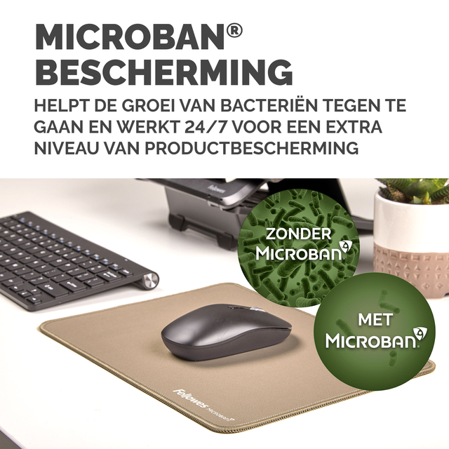 - Meer dan 25% groter dan onze standaard muismatten voor meer bewegingsvrijheid, waardoor kleine herhaalde bewegingen die pijn in de pols kunnen veroorzaken, worden verminderd. Bescherm uw bureaublad en verbeter de prestaties van uw muis met deze muismatten die geschikt zijn voor optische en lasermuizen. De ingebouwde Microban®-bescherming helpt de groei van bacteriën te voorkomen en werkt 24/7 voor een extra bescherming van het product. Gemaakt van 83% gerecycled materiaal. De antislipbasis houdt de muismat de hele dag op zijn plaats. Duurzame platte stiksels voorkomen rafelen. Gemaakt om lang mee te gaan, met 5 jaar garantie.