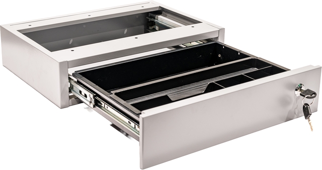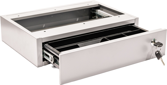 Met deze persoonlijke lade zorg je voor extra opbergruimte en zijn je spullen veilig opgeborgen. De lade is zowel links als recht te monteren onder het bureau middels schroeven. De lade is afsluitbaar met een unieke sleutel. Nooit meer rommel op je bureau met deze persoonlijke lade. Met een totale afmeting van 390x295x90mm biedt dit voldoende ruimte om je spullen in op te bergen. Specificaties: