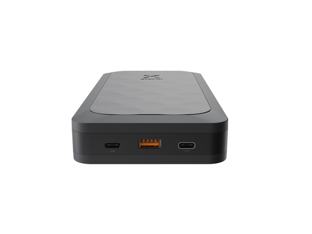 - Deze 45.000mAh Powerbank beschikt over een USB-A poort en twee supersnelle USB-C PD poorten. De 67W USB-C PD poort is ideaal voor het snel opladen van laptops maar kan natuurlijk ook gebruikt worden voor het opladen van andere mobiele apparaten. De behuizing is voor het grootste gedeelte gemaakt van gerecycled plastic, om te focussen op een duurzamere toekomst. De prachtige kleur ‘Midnight Black’, gecombineerd met het unieke patroon op deze FS5 Power Bank, geeft hem een verbluffende uitstraling. Geef je apparaten extra energie in stijl met dit topmodel!