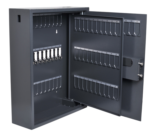 • Deze hoogwaardige sleutelkast voor 100 sleutels combineert het hoogste beveiligingsniveau met een uitstekende sleutelorganisatie.