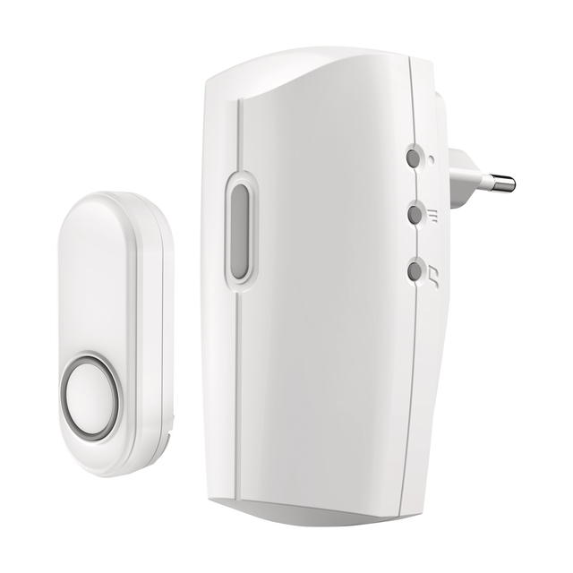 Stekkerdeurbelset KlikAanKlikUit ACDB-8000ACMet deze draadloze stekkerdeurbelset zorg jij ervoor dat je nooit meer een bezoeker mist. Je plaatst de plug-in deurbel eenvoudig in elk gewenst stopcontact in huis, terwijl je de waterdichte drukknop bij de voordeur, garage of schuur bevestigt. Zo hoor jij overal direct wanneer er wordt aangebeld. De installatie is verrassend eenvoudig. Je steekt de deurbel in het stopcontact, koppelt de drukknop met één druk op de knop en het systeem is direct klaar voor gebruik. Geen ingewikkelde bedrading, maar direct gemak en betrouwbaarheid. Je kiest uit zes verschillende melodieën en stelt eenvoudig het volume in naar jouw voorkeur. Of je nu een subtiele melding wilt of een duidelijk hoorbare bel, jij bepaalt hoe je gewaarschuwd wordt. Dankzij de flexibele plaatsing gebruik je deze deurbel precies waar jij hem nodig hebt. Met deze slimme oplossing combineer jij gebruiksgemak, flexibiliteit en zekerheid in één compacte deurbelset. Ideaal voor elk huishouden waar comfort en betrouwbaarheid voorop staan.Kenmerken: