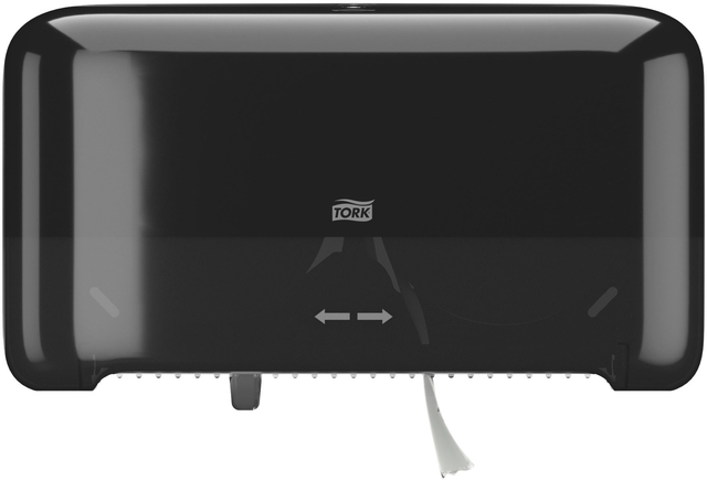 Tork OptiServe® Dispenser voor 2 Rollen Hulsloos Toiletpapier Zwart T7: De Tork OptiServe® Hulsloos Dispenser is een hulsloos toiletpapiersysteem met grote capaciteit voor faciliteiten waar efficiëntie, duurzaamheid en beleving centraal staan. De dispenser heeft een hoge capaciteit, neemt minder ruimte in beslag en is gecertificeerd ‘Easy-to-use’: dit is een beter alternatief voor traditioneel toiletpapier en jumbo toiletrollen. Deze papierdispenser voor twee rollen toiletpapier maakt deel uit van een groot assortiment om te voorzien in de wensen voor verschillende sanitaire ruimten. Zo kunnen dezelfde compacte vullingen worden gebruikt in het hele gebouw. In vergelijking met traditioneel toiletpapier bevatten de Tork OptiServe® Hulsloze Rollen 3 keer meer papier, zonder huls of wikkel voor minder afval.De voordelen op een rijtje: