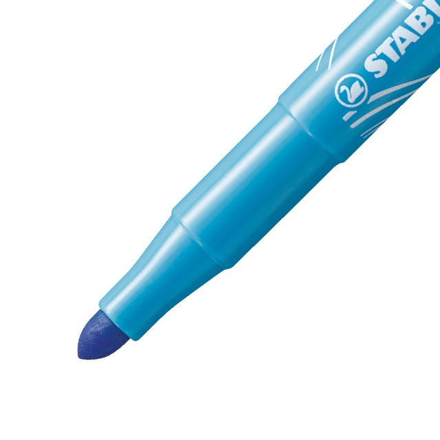 De STABILO Power max viltstiften hebben een bijzonder hoogwaardige en drukbestendige XL punt. Ze kunnen tot 8 weken zonder dop zonder uit te drogen. Ideaal voor kleine kinderen die de dop wel eens vergeten. Bovendien is de inkt in de pennen uitwasbaar – kleine vlekjes zijn dus geen probleem. Extra dikke viltstift STABILO power max Classpack met 140 kleurstiften.