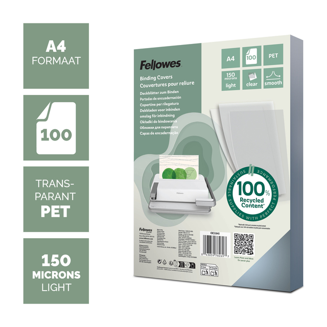 - Transparante voorbladen, ideaal om te gebruiken als voorkant om uw ingebonden document te presenteren.