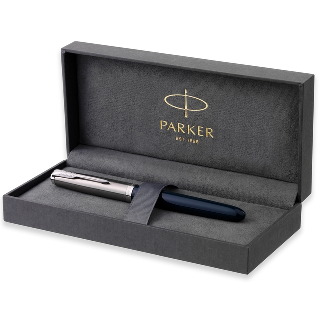 • De vulpen van Parker 51 in nachtblauw met een chroom afwerking heeft een gestroomlijnde vorm en een iconische bedekte penpunt (F) met roestvrij staal.