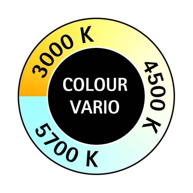 - Kleurtemperatur (per lichtbron)3.000 Kelvin (warm wit) tot 5.700 Kelvin (daglicht wit)