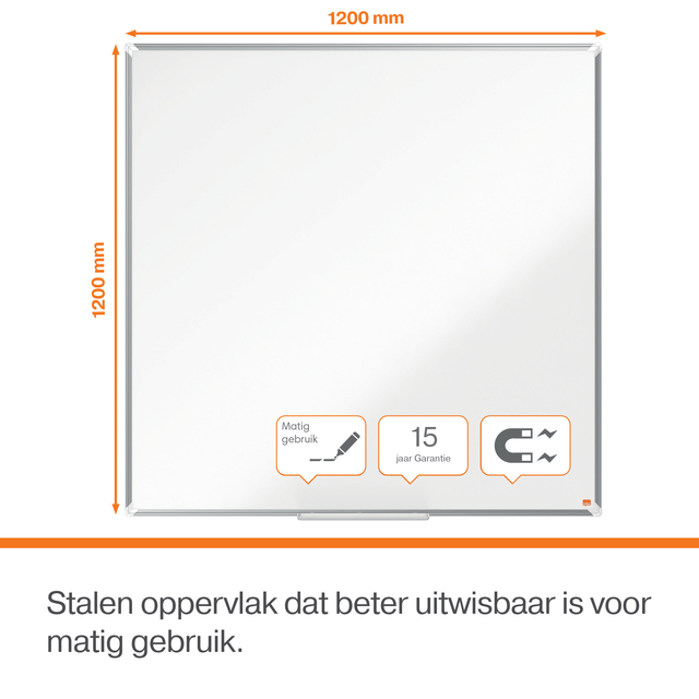 - Gelakt stalen magnetisch whiteboardoppervlak dat beter uitwisbaar is voor gemiddeld gebruik.