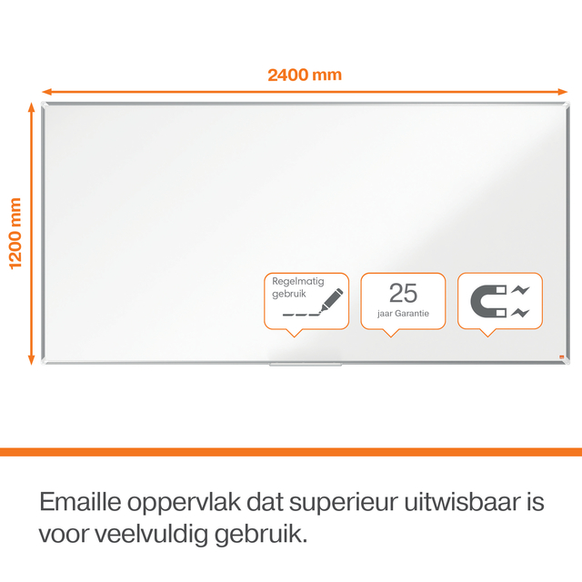• Geëmailleerd magnetisch whiteboard oppervlak met superieure uitwisbaarheid voor eenvoudig schoonmaken en veelvuldig gebruik.