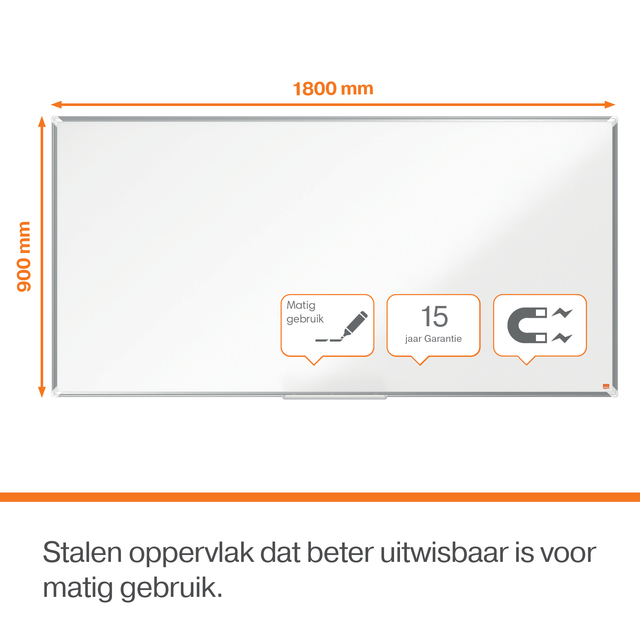 • Gelakt stalen magnetisch whiteboardoppervlak dat beter uitwisbaar is voor gemiddeld gebruik.